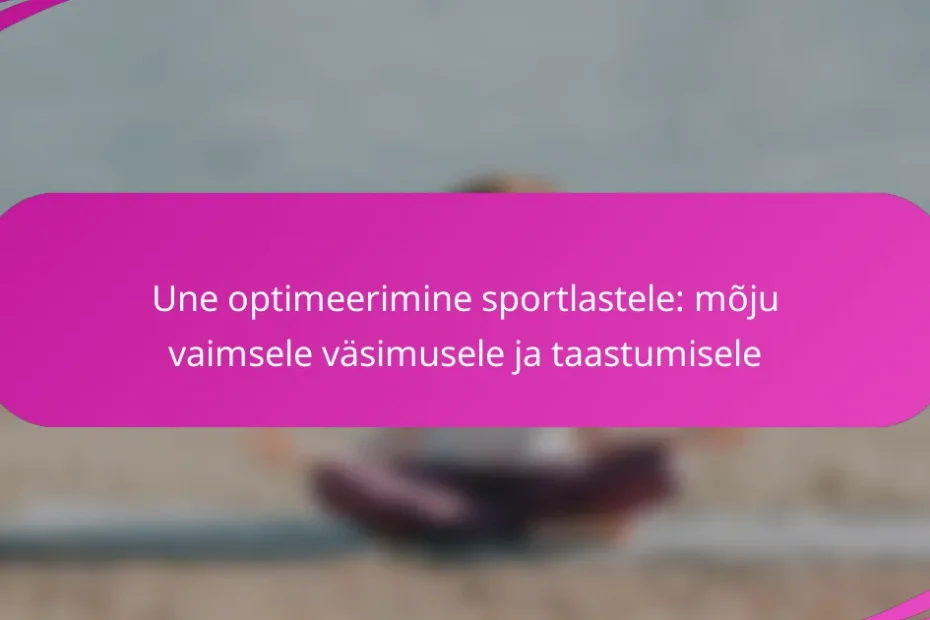 Une optimeerimine on sportlaste jaoks ülioluline, mõjutades oluliselt vaimse väsimuse juhtimist ja taastumist. Kvaliteetse une prioriseerimine parandab kognitiivset funktsiooni, otsuste tegemist ja meeleolu. Tõhusad strateegiad hõlmavad järjepidevaid unegraafikuid, keskkonna kohandamist ja une jälgimist. Nende meetodite… Une optimeerimine sportlastele: mõju vaimsele väsimusele ja taastumisele